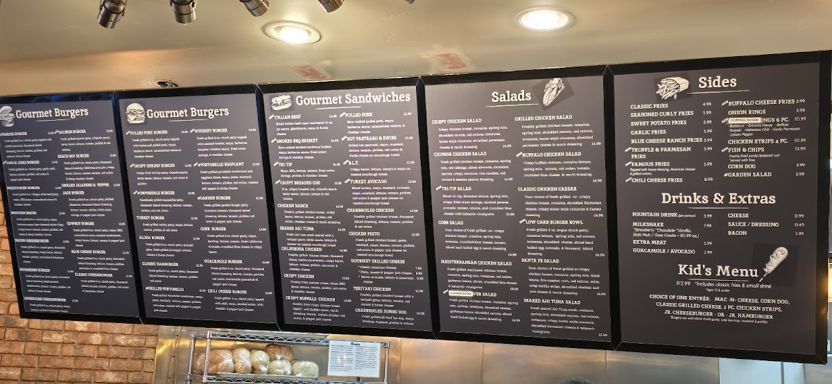 The menu extends beyond burgers, offering sumptuous sandwiches like the Grilled Chicken Pesto Sandwich, with its succulent, grilled chicken breast draped in vibrant pesto and complemented by a delightful mix of fresh veggies. Meanwhile, the BBQ Pulled Pork Sandwich invites you to indulge in slow-cooked pulled pork slathered in rich BBQ sauce, making for a flavor-packed experience that’s sure to satisfy your cravings.